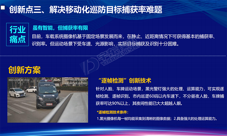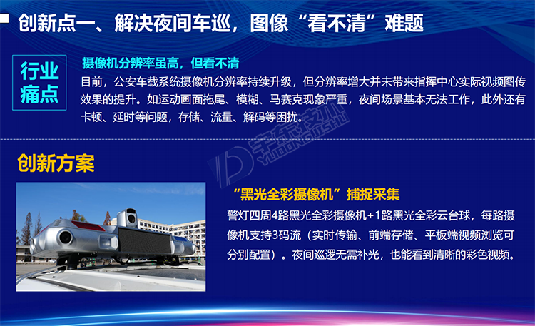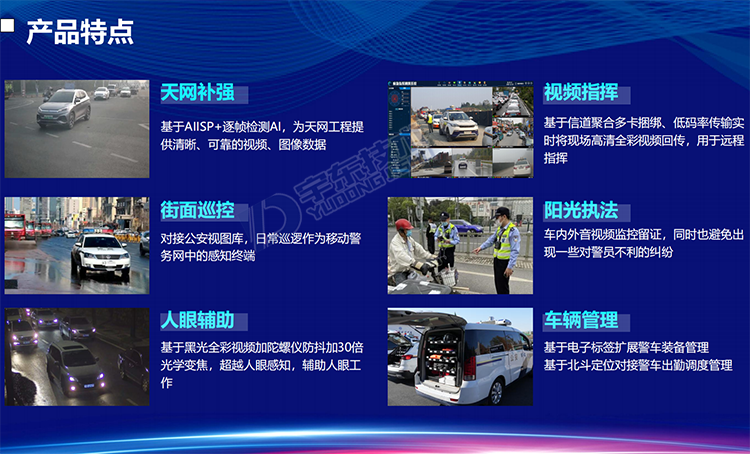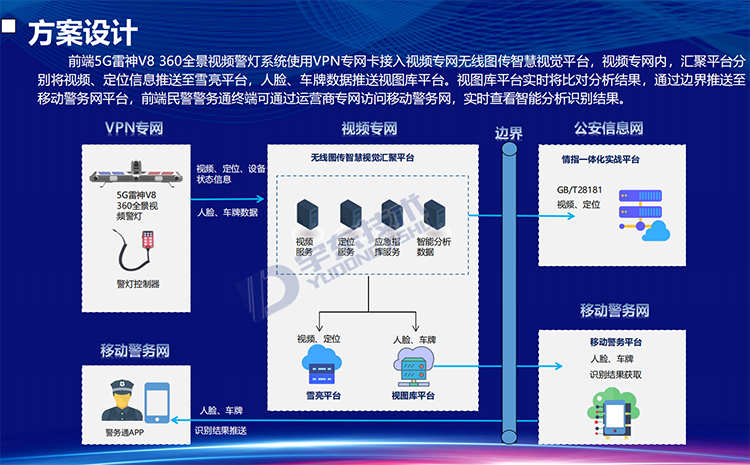 YD-CZ3600-NS型5G雷神V8 360全景視頻警燈系統是針對警用執法、刑偵和應急指揮開發的智能警用裝備。產品可部署在車輛等移動載體上,能夠對車輛周邊人員特征(面部、體型、動作)、車輛特征(車牌、車型、顏色)以及移動終端(手機、PAD等)的關鍵信息進行采集。通過智能分析、比對技術,對人員(性別、年齡、人種)、車輛(車牌號、車牌顏色、車型)信息進行分析、甄別,實現對重點監管目標的提前預警,同時還可以通過5G/4G等網絡接入公安應急指揮調度平臺,實現前端警力的調度、指揮以及對突發事件的應急處置。產品可應用于警用大數據采集、黑名單布控、人員違法抓拍、武裝押運監管等場景。