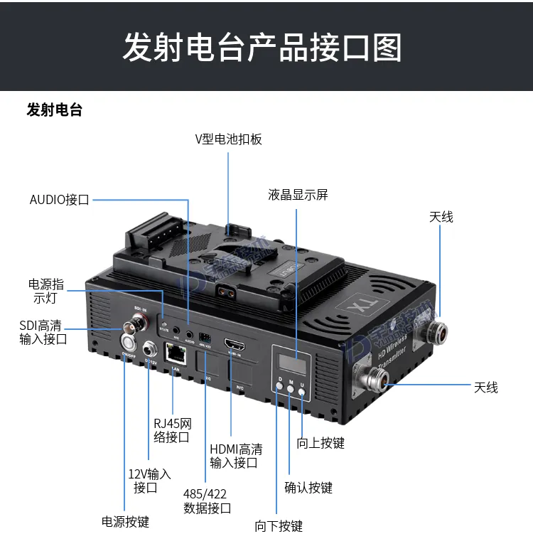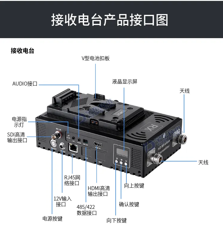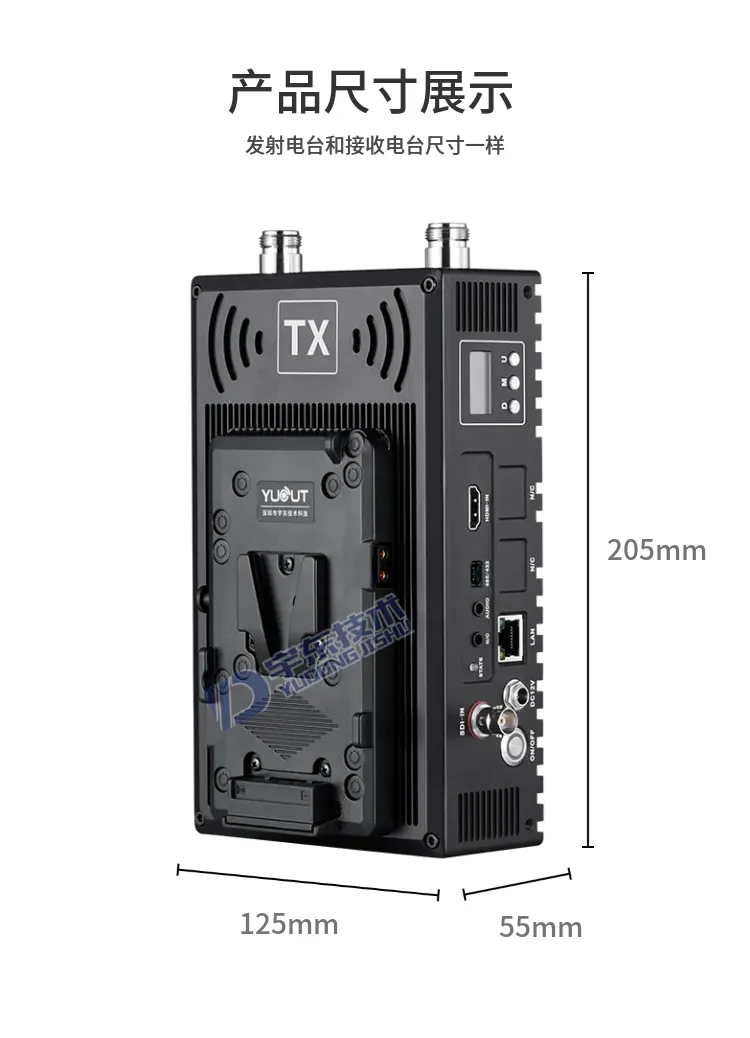 3、發射和接收電臺機身嵌入SONY V型扣,直接卡入專業電池使用